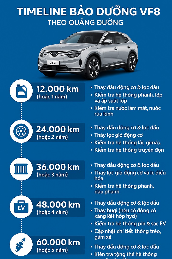 Lịch bảo dưỡng định kỳ VinFast VF8 (chu kỳ 12.000 km).