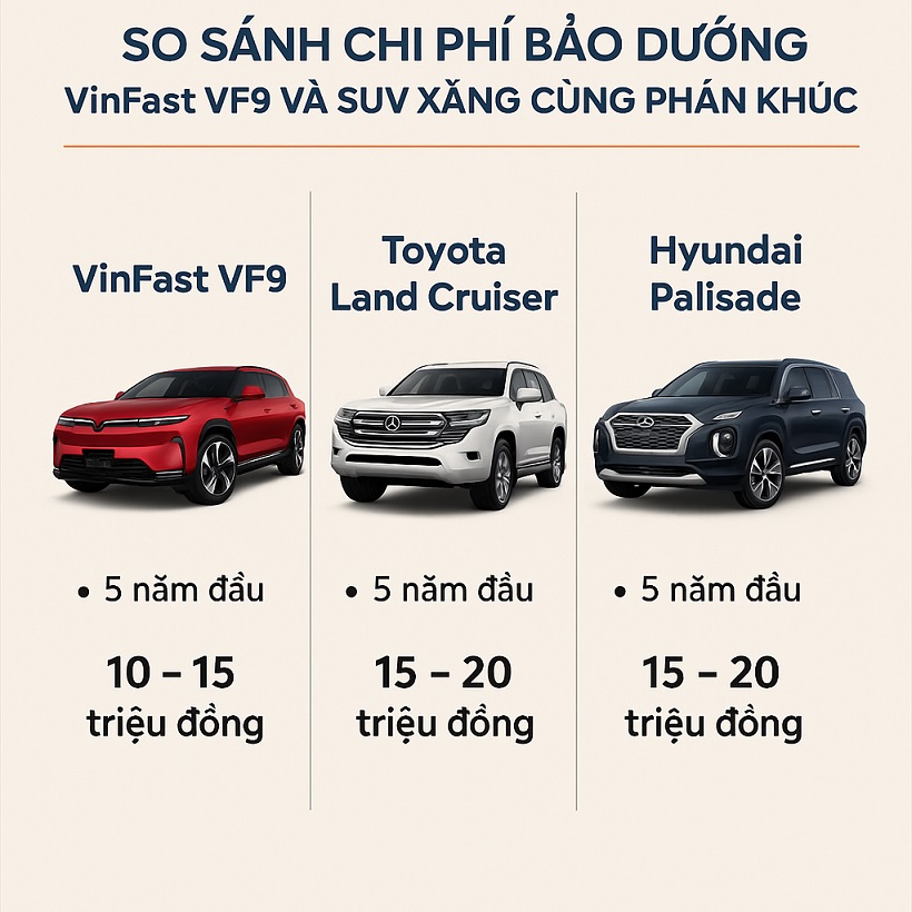 So sánh chi phí bảo dưỡng VF9 với SUV xăng cùng phân khúc