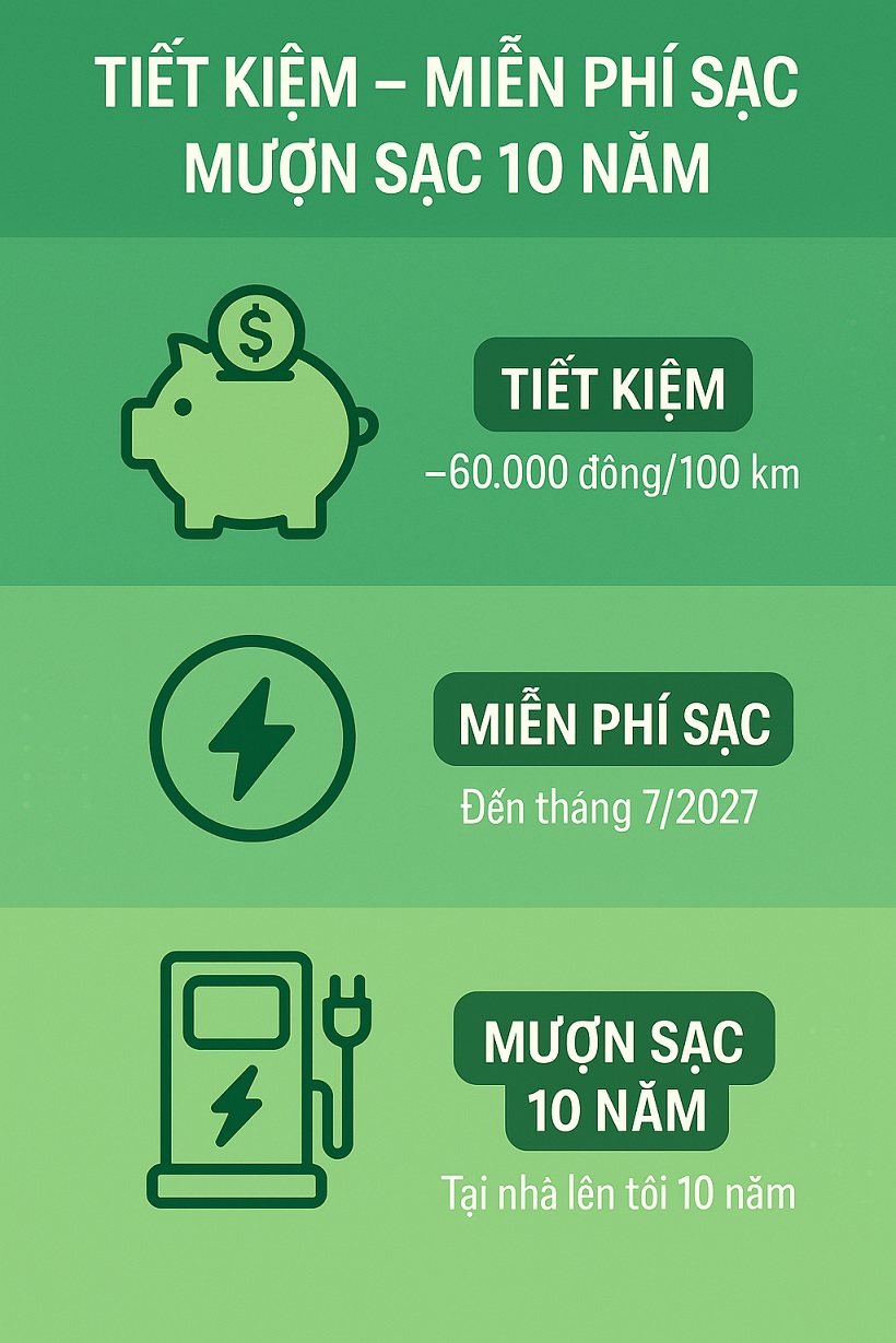 Miễn phí sạc đến 7/2027: Chi phí nhiên liệu = 0 đồng trong gần 2 năm đầu.