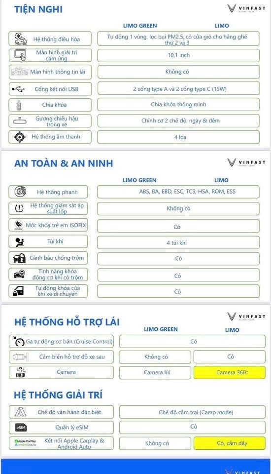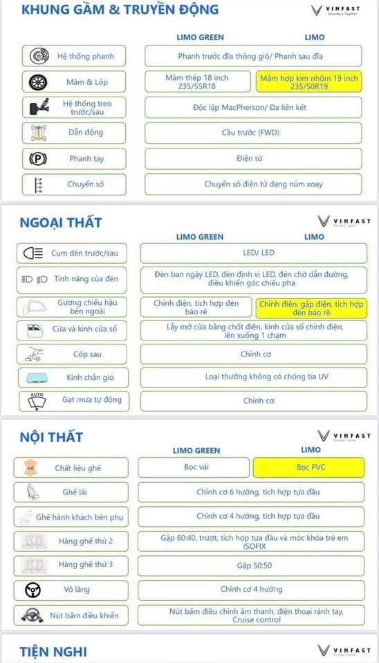 So sánh giữa Limo Và Limo green