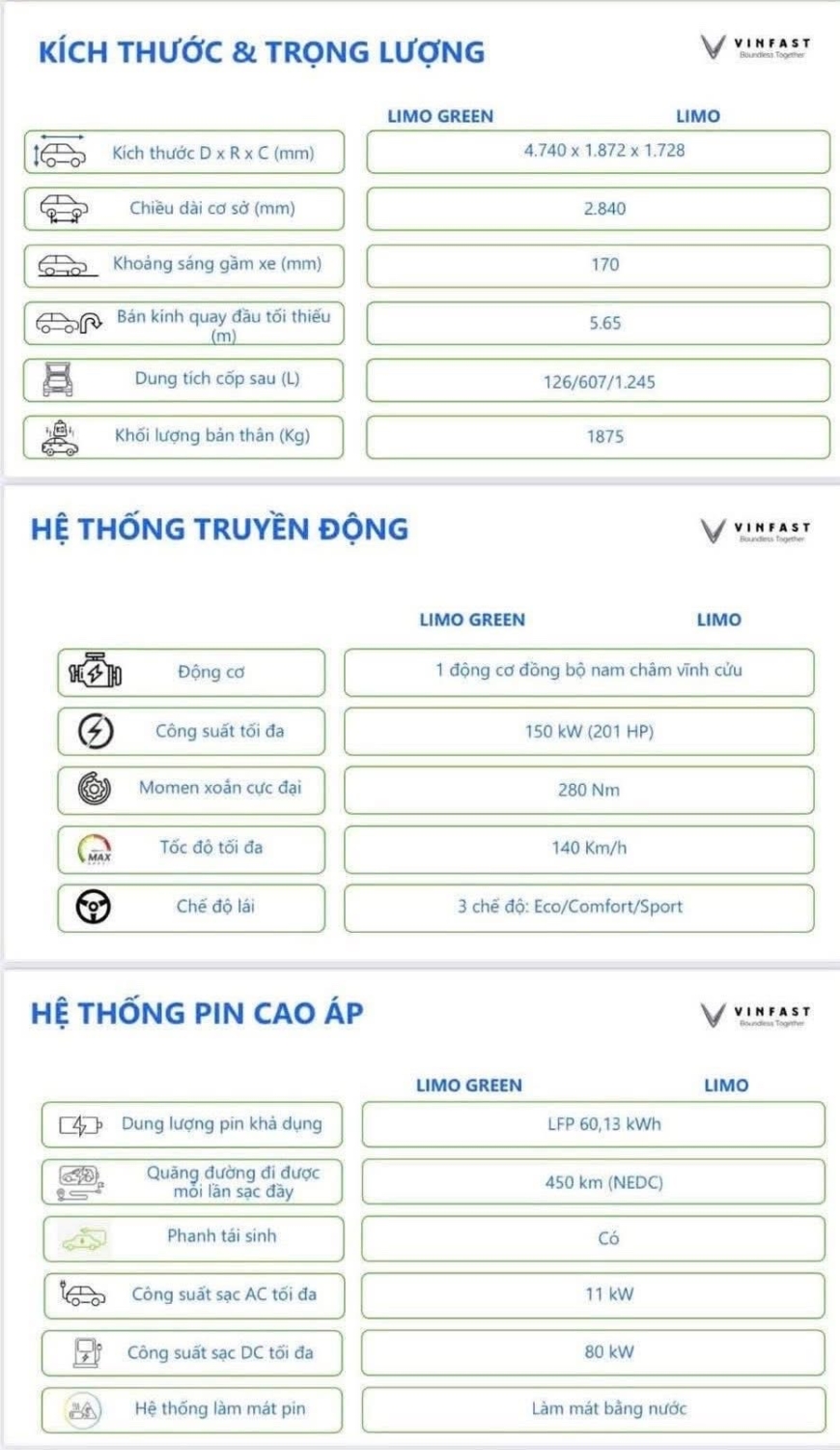 🔧 Thông Số Kỹ Thuật Động Cơ Và Pin Của VinFast Limo Green