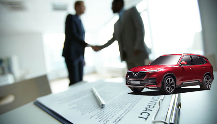 Ký hợp đồng mua xe và hợp đồng vay trả góp.