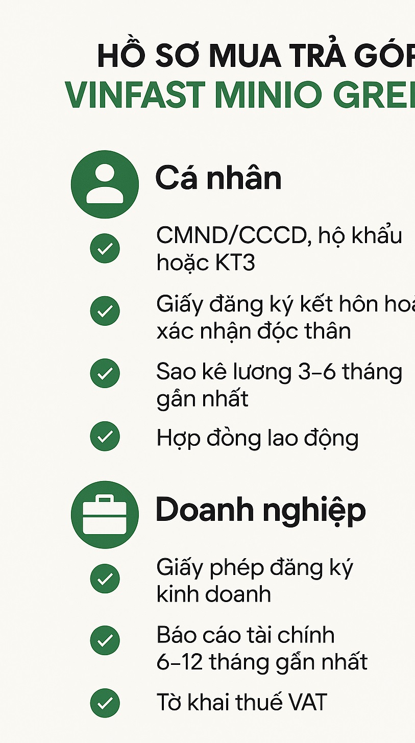 3. Hồ sơ cần chuẩn bị khi mua Minio Green trả góp